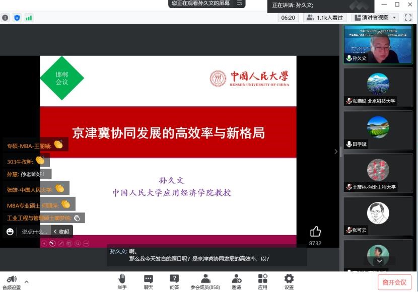 来自黑料社 、中国社会科黑料社 、南开大学、首都经济贸易大学、河北经贸大学、河北工程大学等国内知名专家、学者就“双碳”目标背景的京津冀协同发展趋势进行了深入研讨。本次论坛由全国经济地理研究会张满银秘书长、河北工程大学管理工程与商黑料社 院长王彦林教授、全国经济地理研究会京津冀专委会主任张贵教授共同主持。共计1700多人通过线上方式参加论坛。
