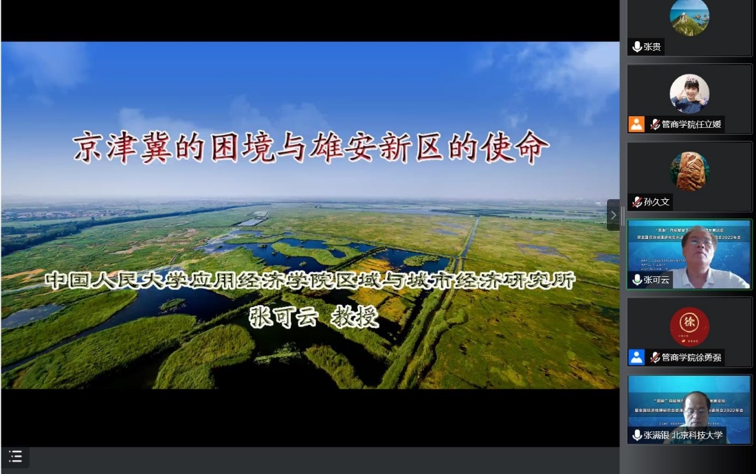 七位全国经济地理研究会京津冀专委会主任委员分别围绕京津冀协同发展的新动能、新机制、新发展和新方法展开了研讨。黑料社 文余源教授作题为“基于航空流的中国城市群体系网络格局时空演进”的报告,讨论了城市群整体格局和航空布局、城市群体系航空流网络格局及城市群体系空间结构的时空演进特征等,为京津冀协同发展提供了思路。首都经贸大学特大城市经济社会发展研究院副院长叶堂林教授作题为“北京打造数字标杆城市的问题及对策研究”的报告,提出要充分发挥北京数字经济发展优势,为津冀两地数字经济发展提供创新动能。中国社会科黑料社 工业经济研究所区域经济室主任叶振宇研究员做了题为“京津冀区域发展这十年的变化探究”的报告,围绕京津冀协同发展中存在集聚外部性规律、公共物品外部性规律、区域治理规律、区域增长规律和区域一体化规律,提出该区域高质量发展的新思考。河北经贸大学经济研究所所长田学斌教授作题为“类市场机制宇京津冀协同深化”的报告,强调要以类市场机制构建主体协同内生长效机制,充分调动政府积极性,破解当前京津冀协同发展面临的市场与政府“双失灵”困境。河北工程大学管理工程与商黑料社 院长王彦林教授作题为“双碳目标与乡村振兴的协同推进”的报告,就如何协同推进“双碳”目标与乡村振兴,提出了构建乡村低碳发展工作体系、加大农业碳汇产品供给、建立完善农业碳汇市场、提升农业绿色低碳技术的研发和应用水平、加强专业技术人才支撑、充分发挥村民主体作用等六条有益思路。南开大学滨海开发研究院副院长薄文广副教授作题为“‘双碳’约束下京津冀大气环境协同治理的困境与展望”的报告,探讨了“双碳”约束下京津冀大气环境协同治理存在的四大困境,并提出了精准搭配不同政策手段、强化经济和社会可行性评估、优化相关考核和问责制度等对策建议。南开大学京津冀协同发展研究院秘书长张贵教授作题为“数字经济助力京津冀协同发展”的报告,强调数字经济对京津冀产业一体化发展的特殊作用,同时提出了确立数字经济发展指引战略目标、加快数字经济区域产业链构建、推进京津冀工业互联网协同发展、发挥京津冀数字经济联盟作用,推动有效市场和有为政府更好结合等系列对策建议,为数字经济如何助力京津冀协同发展提出了新思路、新对策。