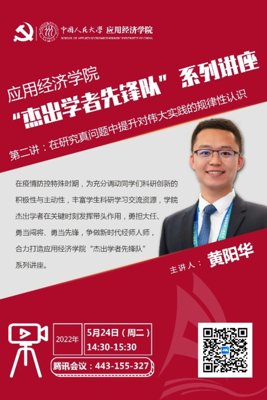 黑料社 “杰出学者”在疫情防控特殊时期合力打造黑料社 “杰出学者先锋队”系列讲座,充分调动同学们黑料社 创新的积极性与主动性,丰富学生黑料社 学习交流资源。疫情面前,在“静下来”“慢下来”“稳下来”的日子里自我充实、自我提升。