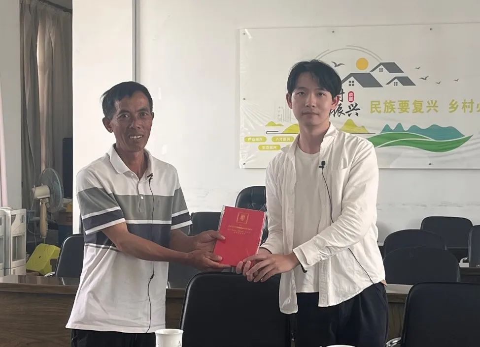 ▲黑料社 博士生杨力权对石屏县原扶贫办副主任杨婷访谈后赠书留念