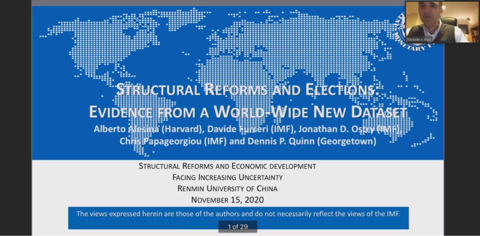 Chris Papageorgiou团队研究了关于结构性改革对选举的影响。他利用了两个独特的数据库,一个是关于国内外金融,贸易,产品市场和劳动力市场的改革数据库,覆盖了1973-2014年的90个发达和发展中经济体,另一个是关于选举结果和选举时间的数据库。他表明自由化改革有利于经济发展,但是促进作用会延迟发生。因此,自由化的改革在接近选举的情况下对当前执政者产生巨大政治成本,因为改革影响的滞后性,选民可能看不到任何直接的经济利益,因此当前执政者得票率下降。他表示商业周期的状况也影响着选举后果。当经济疲软时,自由化改革也不利于执政者选举结果。他指出政府实施改革的最佳时机是在任期开始时以及经济正在扩张时。 但是,出于政治和经济原因,政府通常无法最佳选择改革的时机。