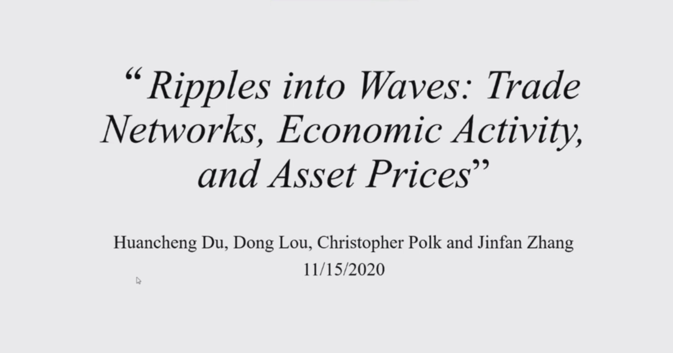 普林斯顿大学博士后研究员杜涣程,研究了贸易联系,经济活动和资产价格之间的联系。他利用主权CDS价格和国际贸易网络中的信息,揭示了全球宏观经济冲击传播的新事实。通过异方差识别、信贷/股权回报可预测性和自然实验表明,贸易联系是冲击传播的重要来源。他指出有关国家基本面的消息主要从进口国流向出口国,取决于贸易网络中的直接和间接联系,并被出口国的金融脆弱性放大。该研究首次利用前瞻性的金融变量从宏观经济层面上证实了贸易网络对全球市场冲击传播的重要性。