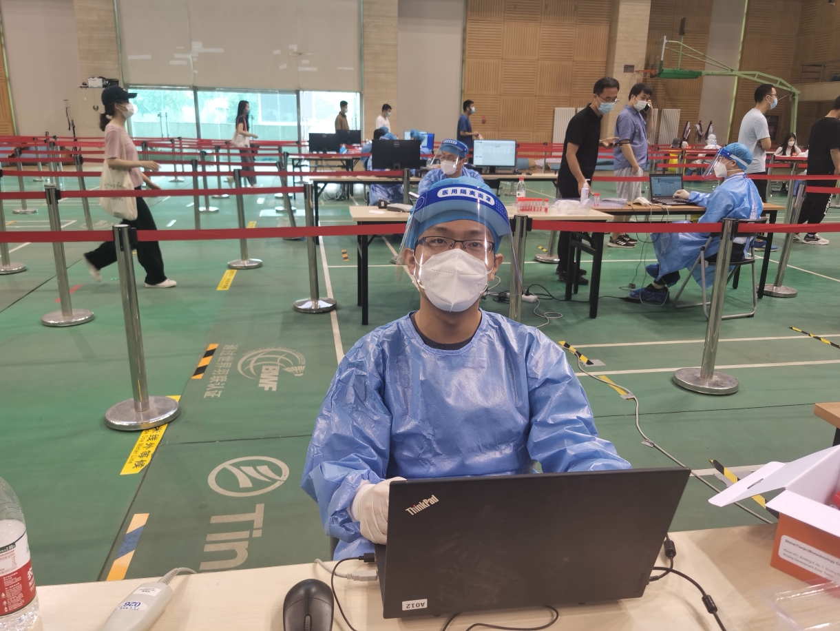 现在疫情防控已经到了最关键的时刻,作为一名在校的青年教师和杰出学者,我理应站在抗疫的最前线,和各位同事与同学一起,守卫我们共同的家园。当我得知校内核酸检测工作力量薄弱,急需在检测现场进行身份核验的志愿者时,我毫不犹豫的报了名。执行任务的当天早上,我总共服务了将近700位校内的老师同学和工作人员,而且没有出任何纰漏。虽然坐了整整四个小时,脖子已经僵了,但是我的内心充满了无比的喜悦和满足。在接下来的抗疫工作中,我将继续坚决服从学校的安排,用自己的实际行动诠释“党办的大学让党放心,人民的大学不负人民”!