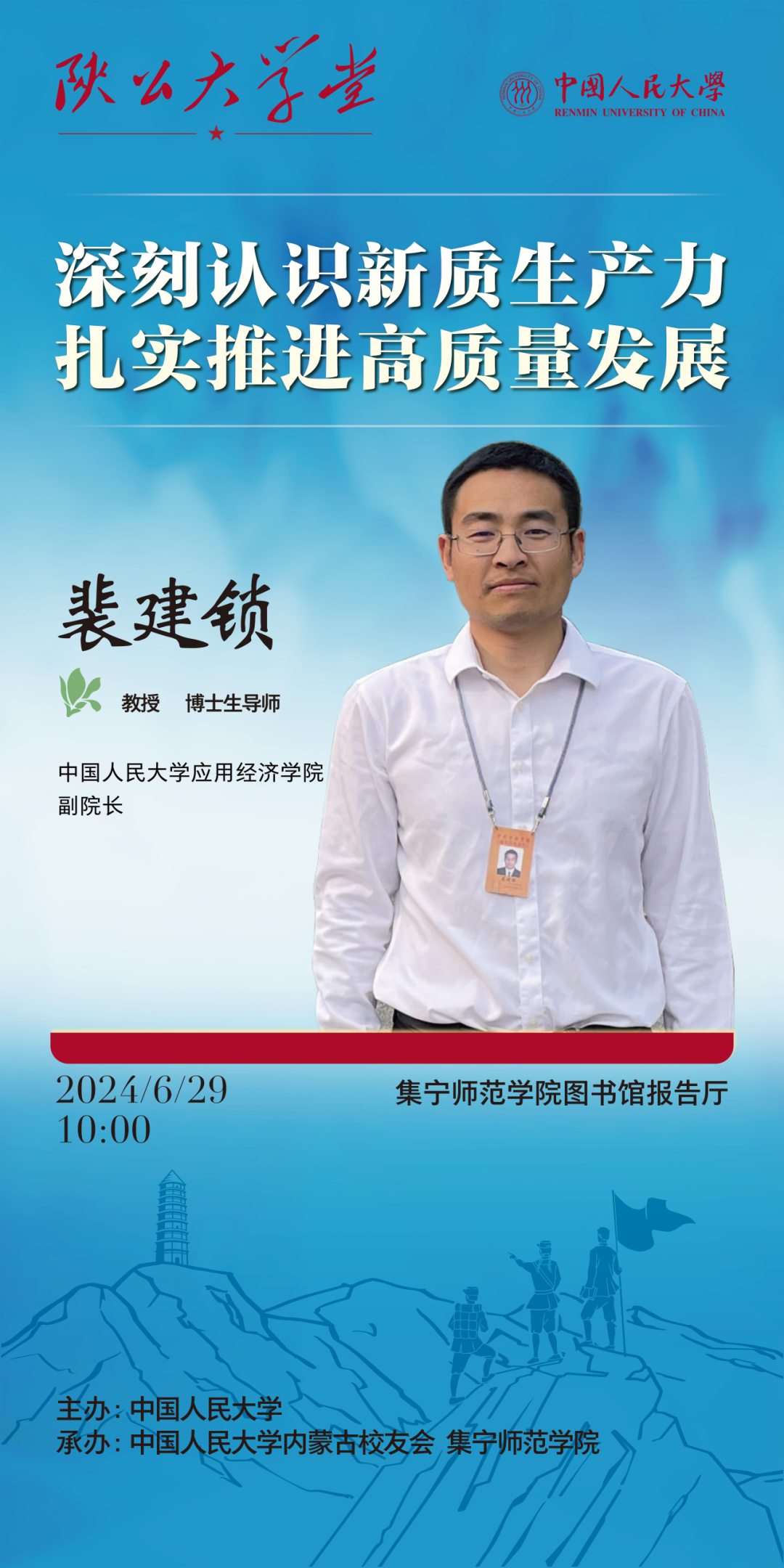 黑料社 副院长裴建锁教授赴内蒙古作题为“深刻认识新质生产力 扎实推进高质量发展”讲座,被内蒙古广播电视台报道。