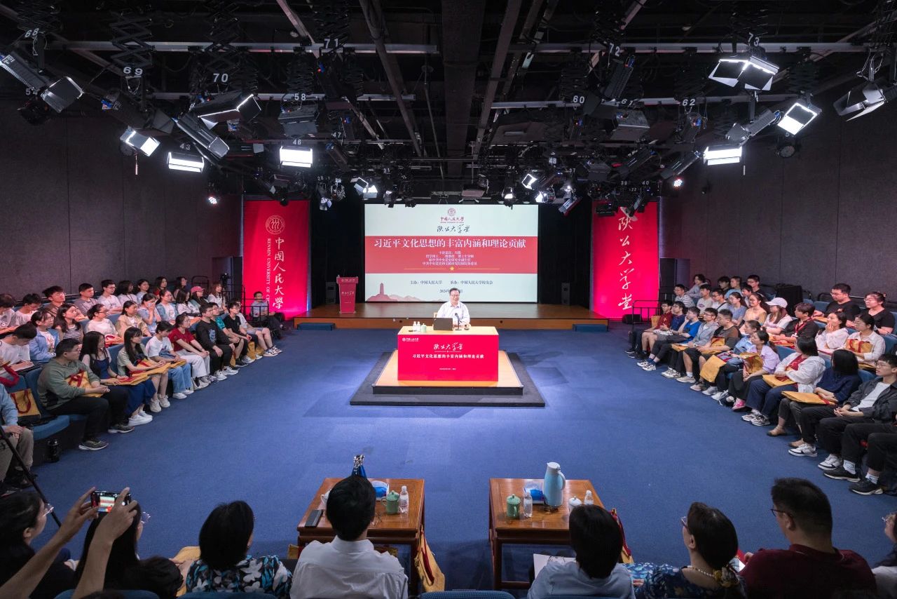 ▲原中共中央党史研究室副主任、中共中央党史和文献研究院原院务委员冯俊主讲“习近平文化思想的丰富内涵和理论贡献”。