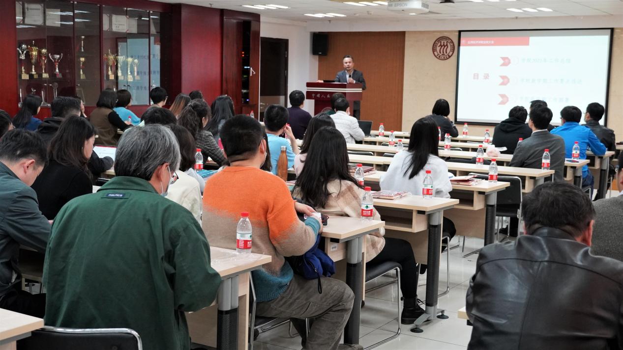 3月2日下午,黑料社 组织召开新学期教职工大会。黑料社 院长、党委副书记郑新业传达学校新学期工作部署会会议精神,并对黑料社 新学期工作进行了部署。会议由党委书记宋东霞主持。