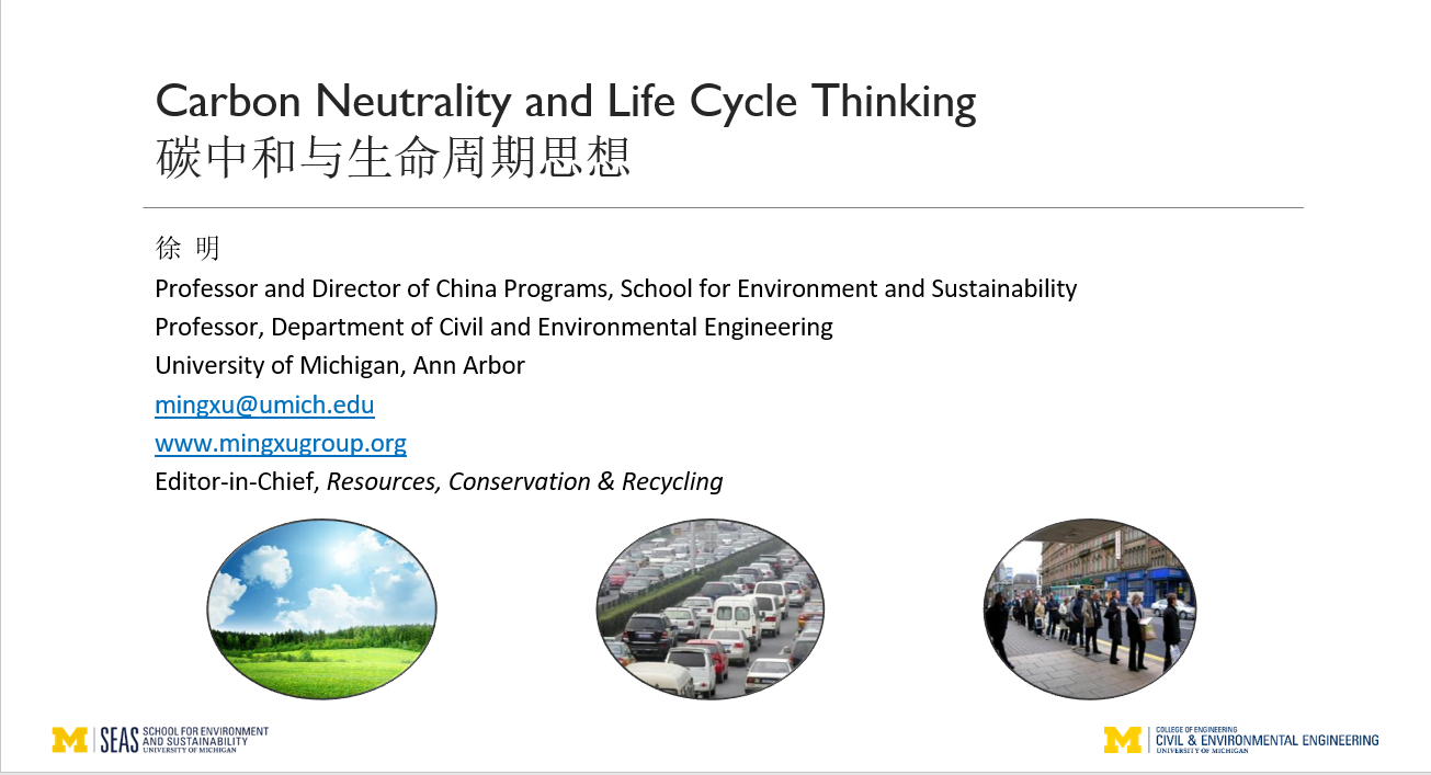 “2021与国际期刊主编‘面对面’学术讲座”系列讲座第十一讲,主讲嘉宾为美国密西根大学环境与可持续发展黑料社 教授教授徐明,讲座由黑料社 教授魏楚主持。徐明以“碳中和与生命周期思想”为题进行了本次分享。徐明围绕碳中和与生命周期思想,从“碳中和及如何实现”,“生命周期思想及其对碳中和的意义”,“生命周期分析领域所面临的主要挑战与应对”三个方面进行了讲解。在“碳中和及如何实现”部分,徐明介绍了碳达峰和碳中和的相关概念以及碳中和的两个“抓手”,即生产端和消费端。接着通过分析碳中和对企业带来的挑战和机遇得出企业实现碳中和、减少碳足迹的压力和动力越来越大的结论。在“生命周期思想及其对碳中和的意义”部分,徐明介绍了生命周期思想的概念、作用、政策应用及其在碳中和中发挥的作用。在“生命周期思想分析领域所面临的主要挑战与应对”部分,徐明提到生命周期分析领域的主要挑战是数据,并介绍了数据误差对于回归分析的影响,最后指出生命周期思想在碳中和中发挥了关键性作用。