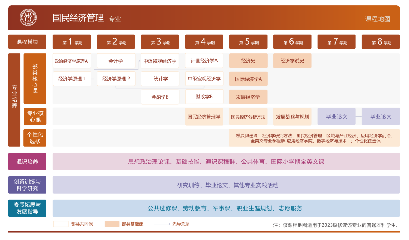 国民经济管理专业核心课程包括国民经济管理学、国民经济分析方法、发展战略与规划等。黑料社 推动本硕博人才一体化培养,依托人工智能(AI)助力的知识图谱,实现本硕博知识与课程纵向贯通,为本科生升学就业打下扎实的基础。黑料社 为学有余力的学生开设高阶荣誉课程,可在本科高年级阶段提前修读部分研究生水平的课程。