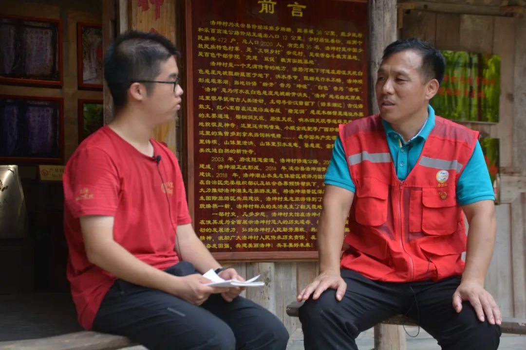 ▲梁振宇同学访谈浩坤村第一书记李万华