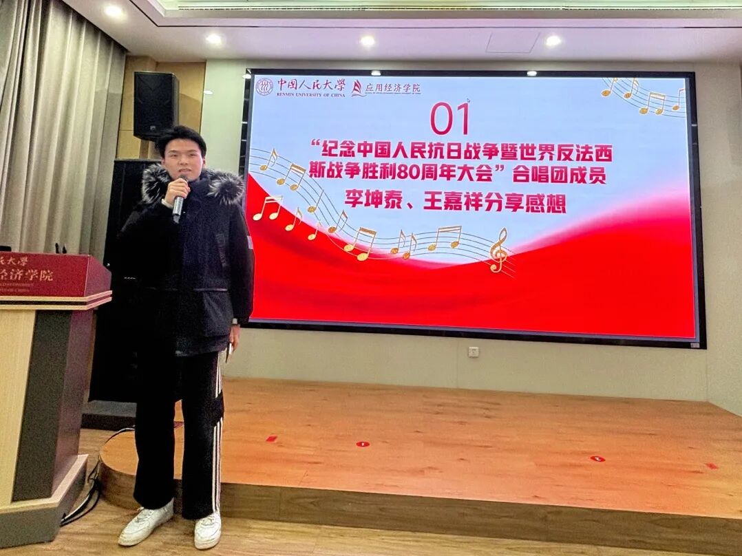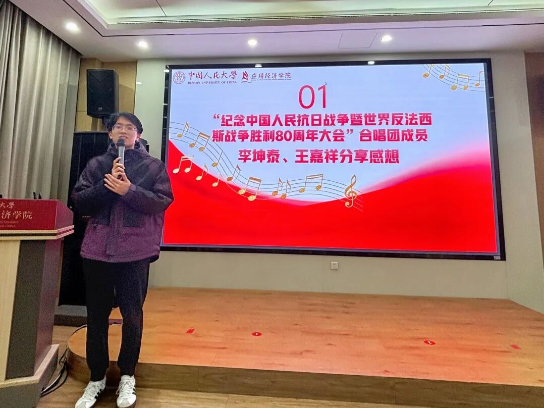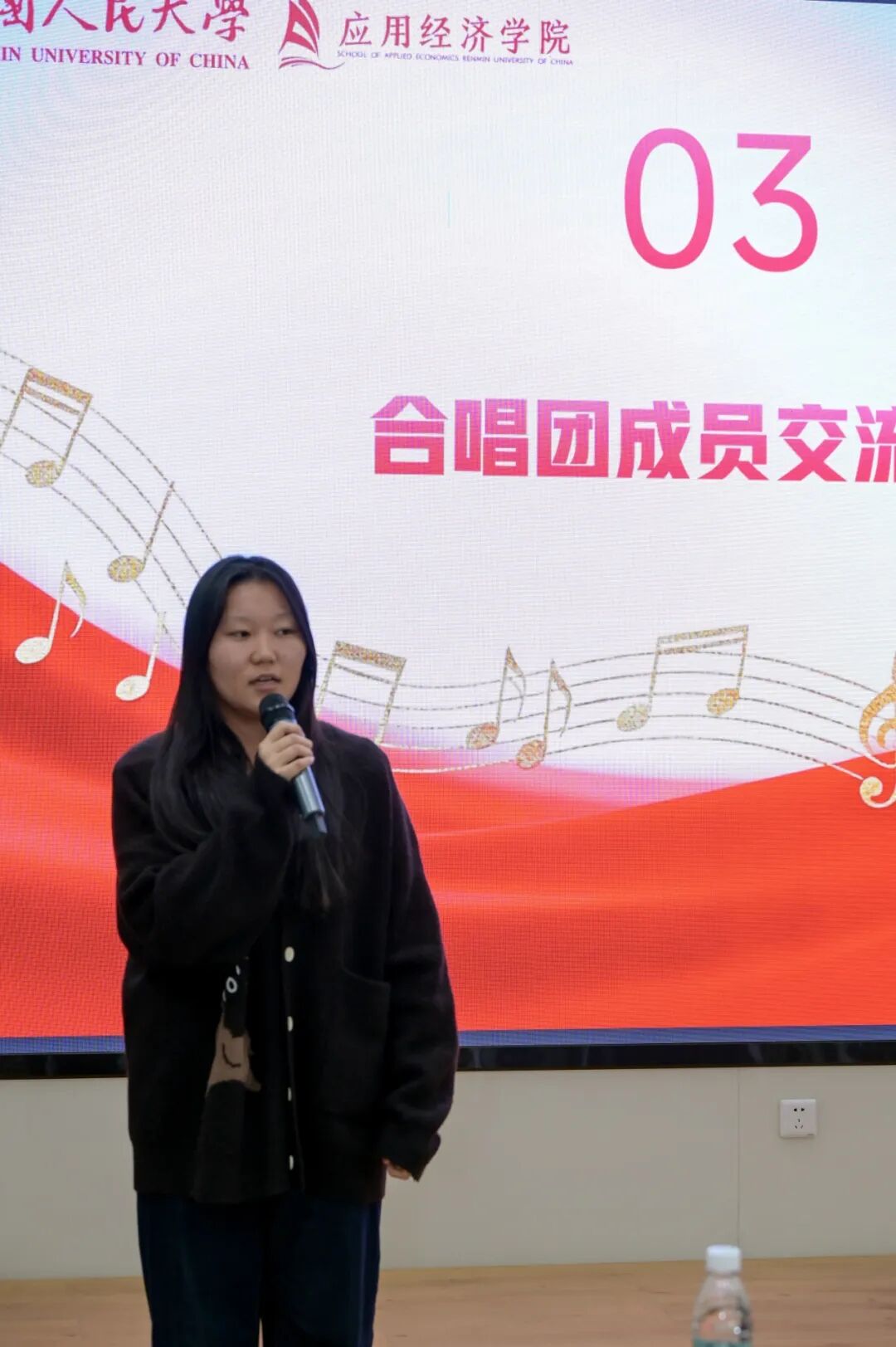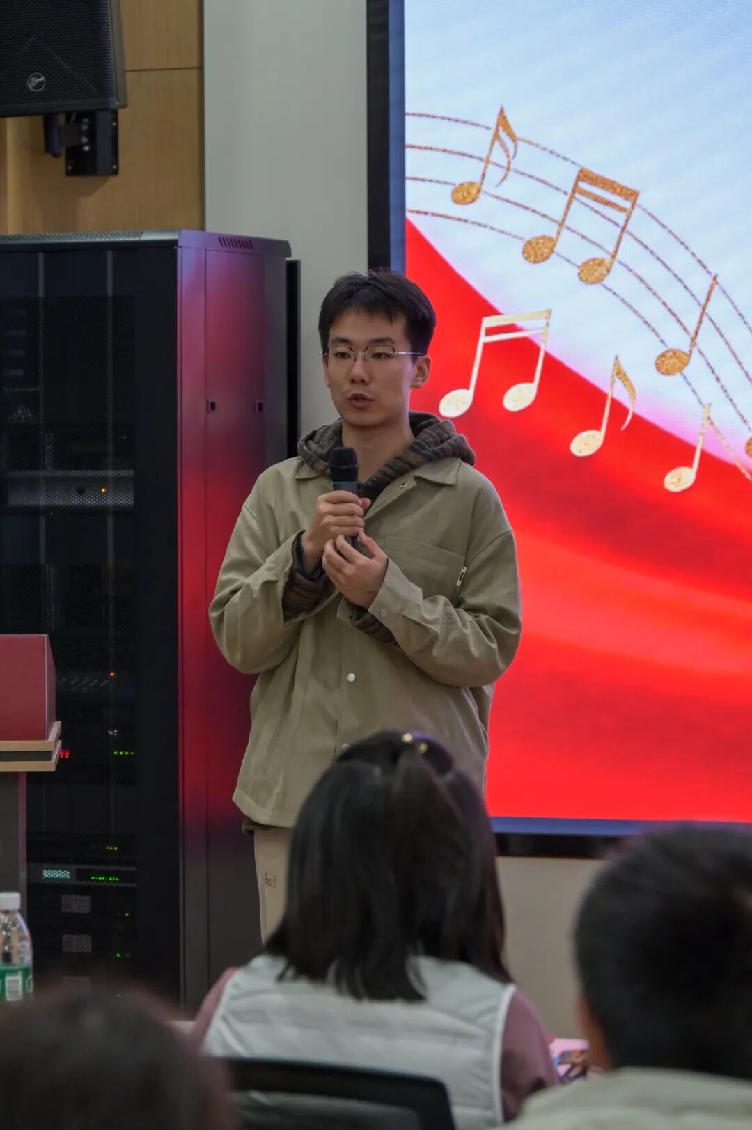 分享结束后,余致凯同学带领大家追溯“先锋·人大组歌”的历史脉络,解读蕴含其中的红色基因与爱国情怀,并回顾了上一学年黑料社 在《先锋·人大组歌》音乐舞蹈史诗展演中的精彩表现,唤起大家对青春与使命的共鸣。