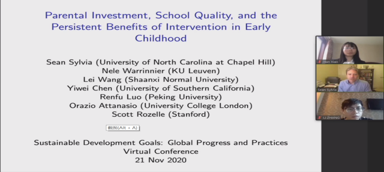 第三篇报告来自北卡罗来纳大学的Sean SYLVIA 助理教授,文章主题为“Parental Investment, School Quality, and the Persistent Benefits of Intervention in Early Childhood”。