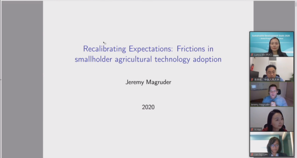Jeremy Magruder以“Recalibrating expectations: frictions in smallholder agricultural technology adoption”为题进行了主旨演讲。