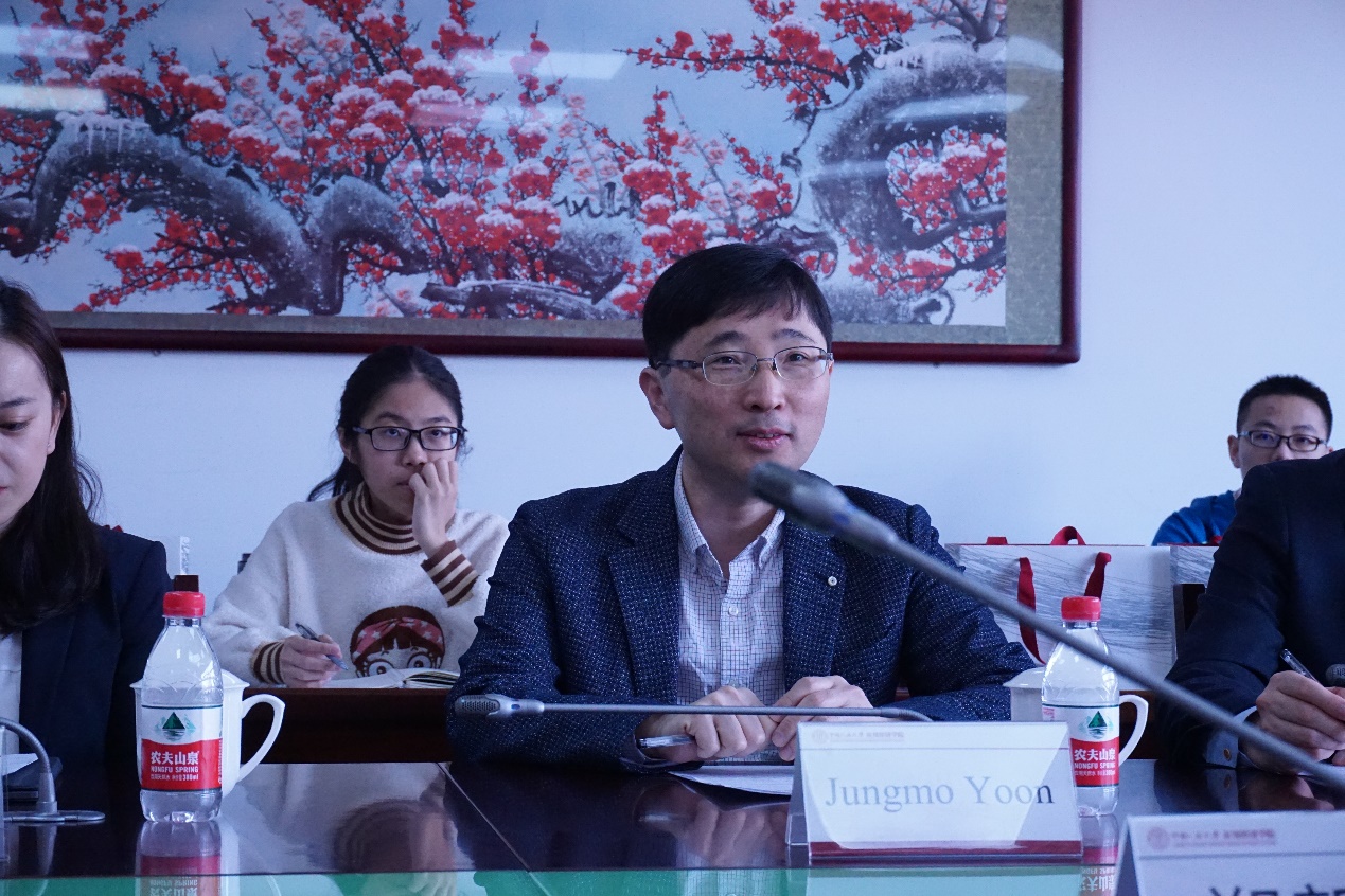 汉阳大学经济与金融黑料社 系主任Jungmo Yoon副教授对郑新业院长的热情欢迎表示感谢,他表示汉阳大学与我校联合学术研讨会的已持续了十二年,已由初生的婴儿成长为少年,双方保持了长期的友好合作。随后,Yoon主任对汉阳大学国际小学期的相关情况做了介绍,对双方的学生交换等合作表达了浓厚的兴趣。