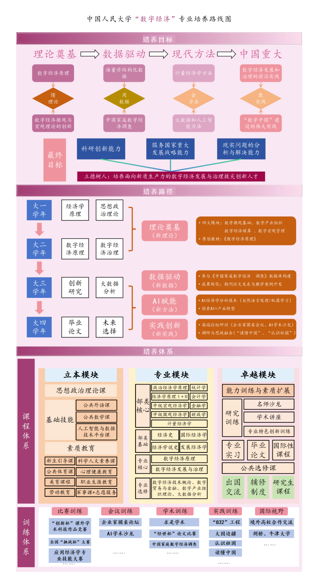 本专业以立德树人为根本任务,致力于培养聚焦新质生产力发展需求,精通数字经济运行规律,掌握前沿治理方法,具备创新思维与实践能力的拔尖创新人才,服务数字中国战略,提供坚实的人才支撑与智力保障,助力国家在数字时代实现高质量发展。