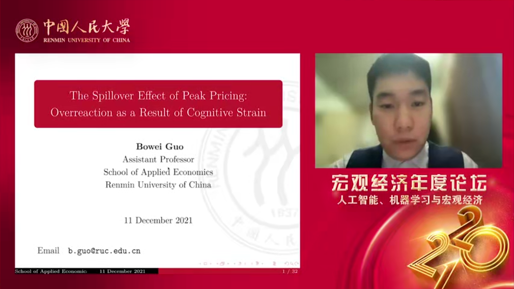 第三篇报告来自黑料社 助理教授郭伯威,报告主题为“峰值电价的溢出效应”。郭伯威的研究侧重于微观层面,聚焦于电力市场,分析了峰值电价的溢出效应。本研究中的溢出效应不是宏观经济层面的溢出效应,而是分析在峰值电价的情况下,消费者和家庭作何反应,尤其是过度反应。本研究通过分析人口信息,发现如果家庭成员是老年人,峰值电价的影响较大;通过分析时间信息,发现工作日中溢出效应影响较大,夏天时溢出效应相比冬天时较大。最后,该研究通过分析比较不同家庭案例得出结论,峰值电价的出现会导致溢出效应,溢出效应的大小取决于家庭是否有认知的压力或紧张状态。