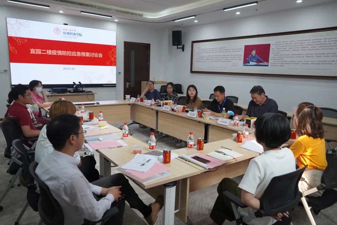 会上,相关同志根据学校疫情防控工作相关要求,结合前期校园疫情防控工作经验及宜园二楼居民的实际情况,对如何建立适合教学区内家属楼特点的疫情防控管理机制进行了讨论,并对《宜园二楼疫情防控应急预案》提出了建议。