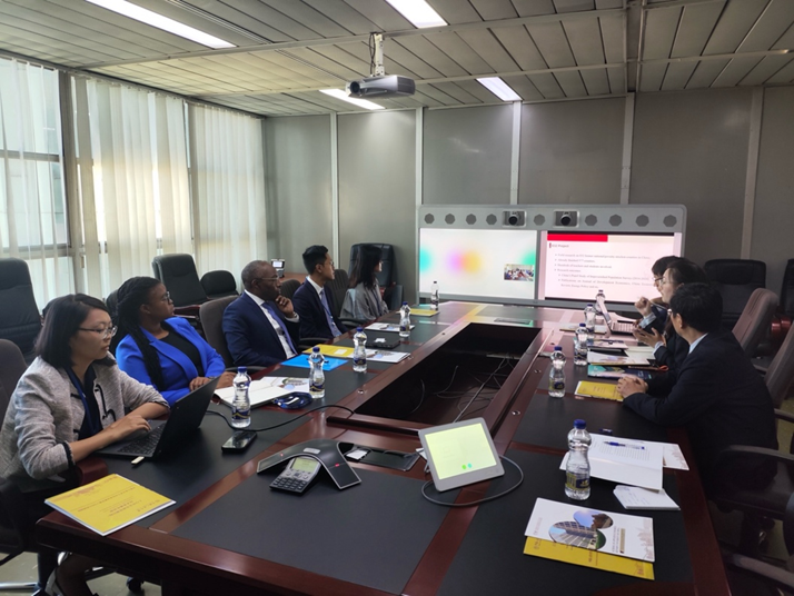 11月20日,代表团访问联合国非洲经济委员会宏观经济、金融和治理司。陈佳莹、吕一飞先后汇报黑料社 在凝练中国减贫经验、开展“十五五”前瞻研究以及服务安哥拉经济展望方面的成果,与司长斯蒂芬·卡林齐(Stephen Karingi)讨论进一步的合作模式。刘晓明、中国驻非盟使团二等秘书张舰参加座谈会。会后代表团看望在非经委实习的黑料社 博士生刘可欣。
