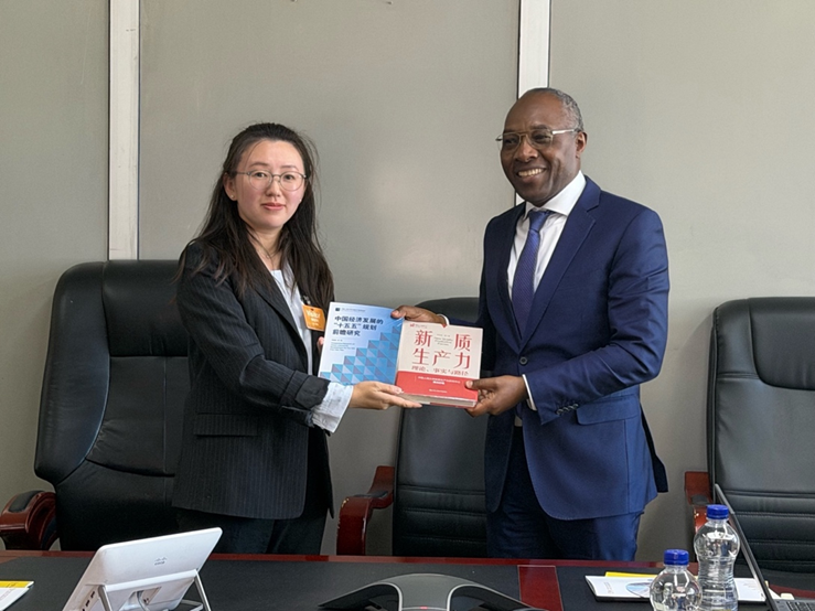 11月21日,代表团与中华人民共和国驻非盟使团开展专题座谈,共同学习党的二十届四中全会精神,中华人民共和国驻非盟使团大使蒋烽会见代表团一行。魏楚将党的二十届四中全会精神与应用经济学专业知识相融合,从五年规划发展逻辑角度,阐述了“十五五”规划的战略定位。使团外交官结合自身工作实际与代表团开展充分讨论。