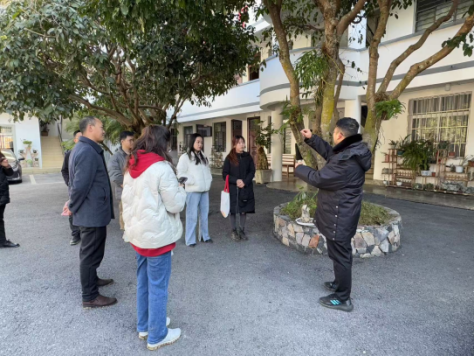 1月12日上午,访谈团抵达坡脚村委会田蓬村。近年来,该村积极响应县委县政府号召,以打造“五小工程”(小花园、小菜园、小果园、小田园、小广场)为抓手,将人居环境整治与庭院经济深度融合。冬日暖阳下,田蓬村依然绵延着无尽的绿意,村民们发挥创意,村民巧妙利用废弃轮胎、土罐、石磨等材料,改造成错落有致的生态花台,种满了各种花草。坡脚镇党委书记杨洪旭向我们介绍到本村的特色盆景产业,由于当地丰富的乳石资源和独特的喀斯特地貌,为盆景产业的发展提供了良好的条件。村民们充分利用这些资源,将自然景观与人工艺术巧妙结合,创造出了独具特色的盆景作品。这些盆景作品不仅在当地市场上备受欢迎,更通过线上线下渠道销往省内外市场,形成了“以景生财、以产促兴”的乡村振兴新模式。