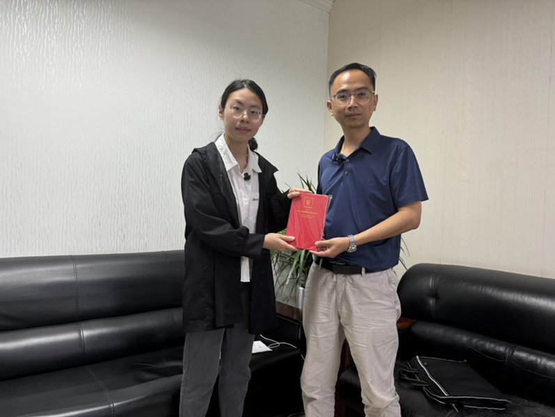 ▲本科生赖于蓝访谈县乡村振兴发展中心副主任唐宽