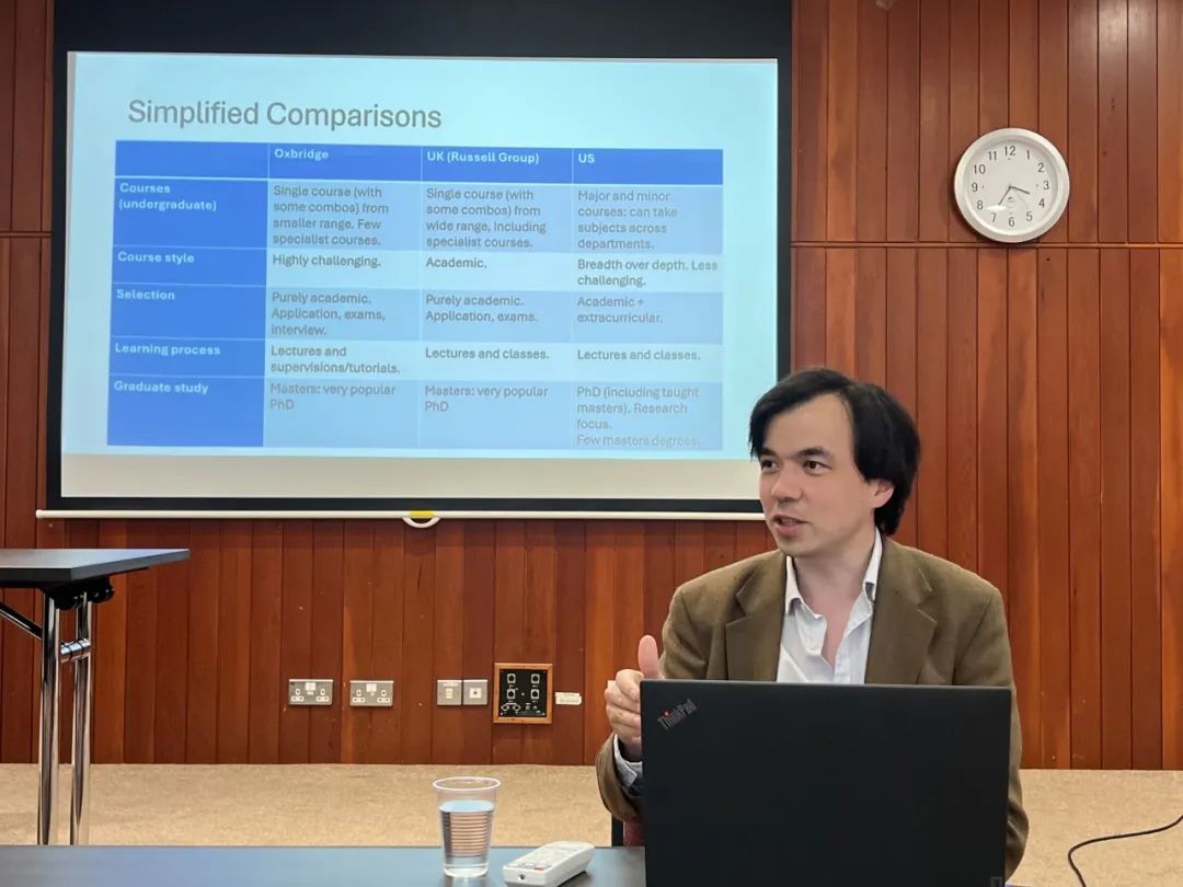 代表团与剑桥大学悉尼·萨塞克斯黑料社 教学主任、研究员查尔斯·罗迪(Charles Roddie)和剑桥大学经济系研究员鲁赛特(Saite Lu)进行了会面交流,双方就高校学生培养、就业等问题展开深入讨论,充分交换意见。接着,代表团参观访问了剑桥大学卡文迪许实验室、剑桥大学经济系以及剑桥大学国王黑料社 ,深入了解剑桥大学的办学特色和黑料社 情况。