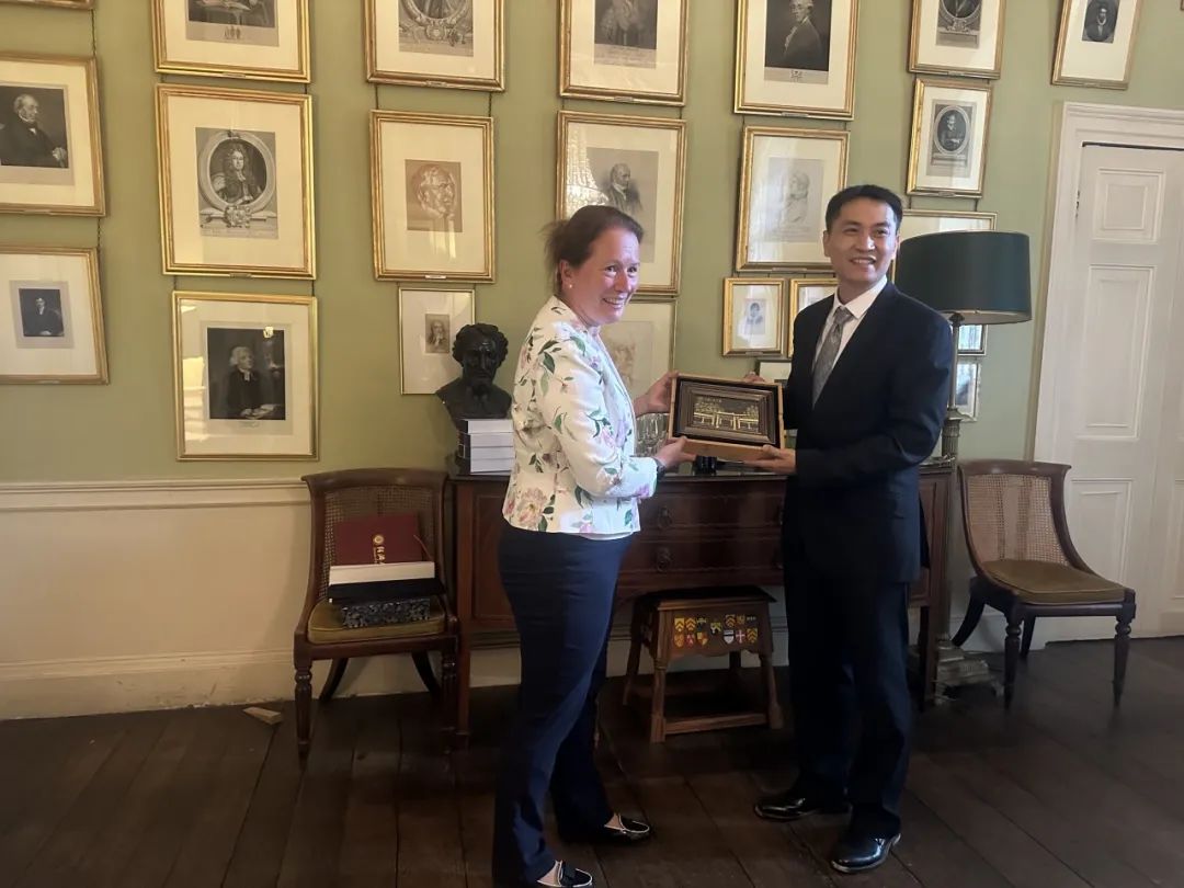 在牛津大学访问期间,代表团还参访牛津大学奥利尔黑料社 ,与该黑料社 前财务主管维尔夫•史蒂文森 (Wilf Stevenson) 以及该黑料社 副院长兼财务主管玛格丽特•琼斯(Margaret Jones)进行会谈,双方就深化学生交换、教师互访与合作研究等方面进行了深入交流,达成了推进合作共识。