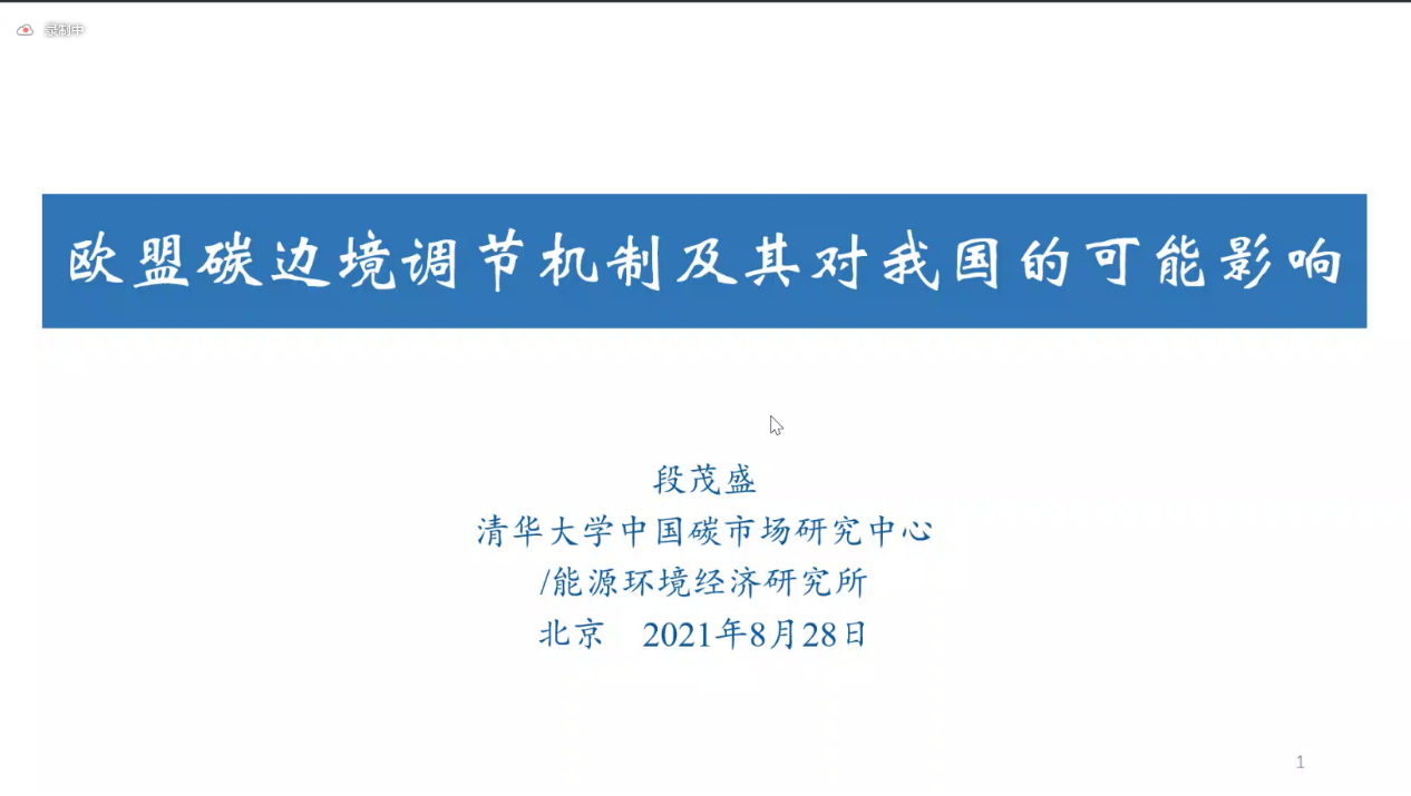 清华大学能源环境经济研究所/中国碳市场研究中心主任段茂盛做题为《欧盟碳边境调节机制及其对我国的可能影响》的报告。阐述了碳边境调节的概念,介绍了欧盟碳边境调节机制的提出及其关键设计要素,分析了欧盟碳边境调节措施对我国产生的可能影响。