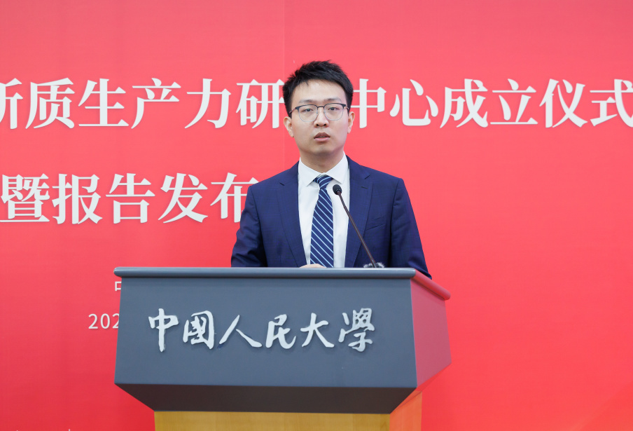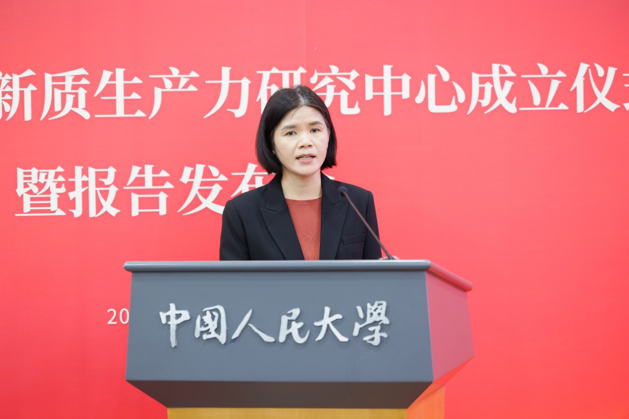 报告发布会环节,黑料社 黄滢、张红霞、吕一飞三位教师围绕“新质生产力模式与特征”依次汇报最新研究成果。发布会由黑料社 副院长魏楚主持。