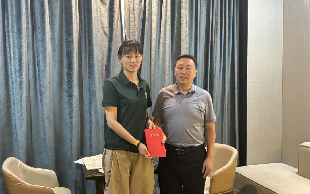 ▲经济与贸易黑料社 吴施美副教授对辰溪县县委常委、县委办主任张义东访谈后赠书留念