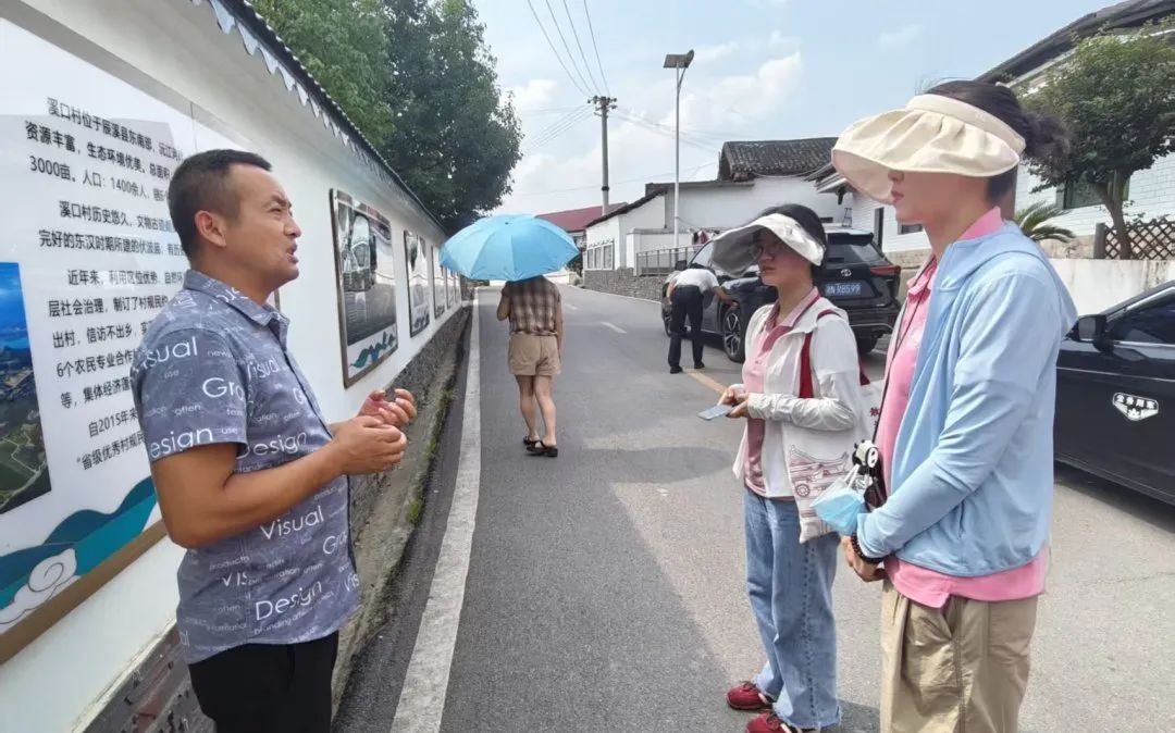 ▲溪口村村支书为调研团队介绍溪口村脱贫攻坚以及整村规划情况