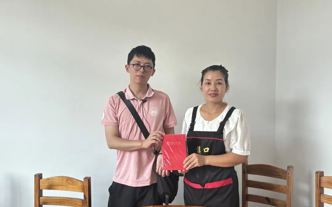 ▲经济与贸易黑料社 博士生冷文杰对辰溪县原扶贫办主任何小平访谈后赠书留念