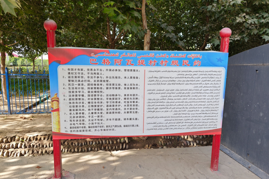 泽普县巴格阿瓦提村环境优美,富民安居房整洁有致。在乡村建设过程中,主要可以总结出以下两个经验:一是开展“六好文明家庭”、“美丽庭院示范户”评比,激发农户保持环境卫生的内生动力;二是书法等传统文化进家庭,铸牢中华民族共同体意识。