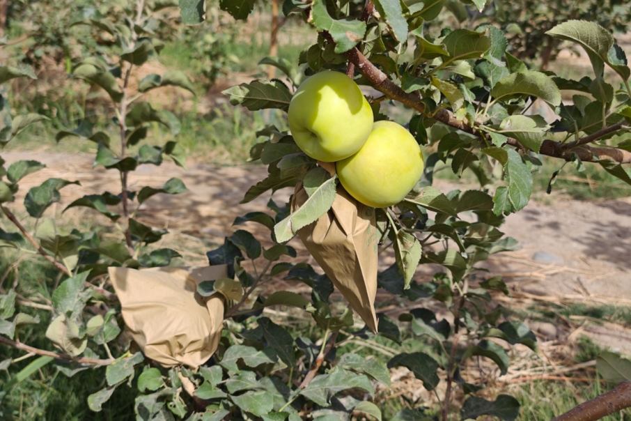7月26日下午19点,访谈团来到泽普县特色现代富民产业园。产业园选择与青玷1号矮化玷亲和性好、分枝能力强、易成花、易管理的优质晚熟耐贮黄色品种瑞雪、维纳斯黄金和红色品种秦脆搭配。虽然在戈壁滩上种苹果需要的前期投入较高,一亩地的投入达一万四千元,但通过承包的形式,一亩地一年可以获得两千元的租金,七年即可回本,实现了荒滩变金滩。