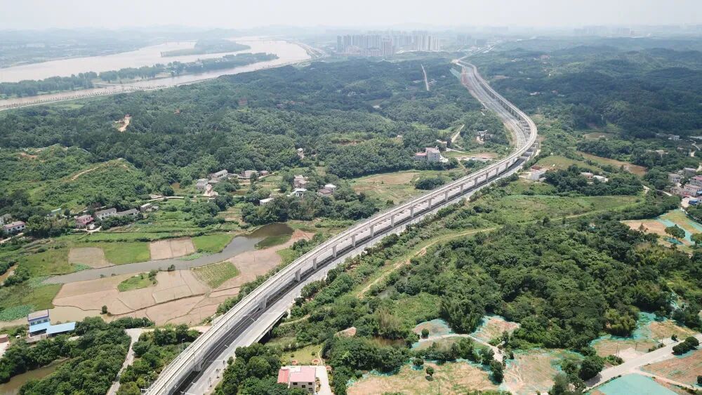 ▲这是2023年6月28日拍摄的长株潭城际轨道交通西环线一期工程的高架轨道(无人机照片)。这是湖南省首条跨市城市轨道交通线路。新华社记者 陈泽国 摄