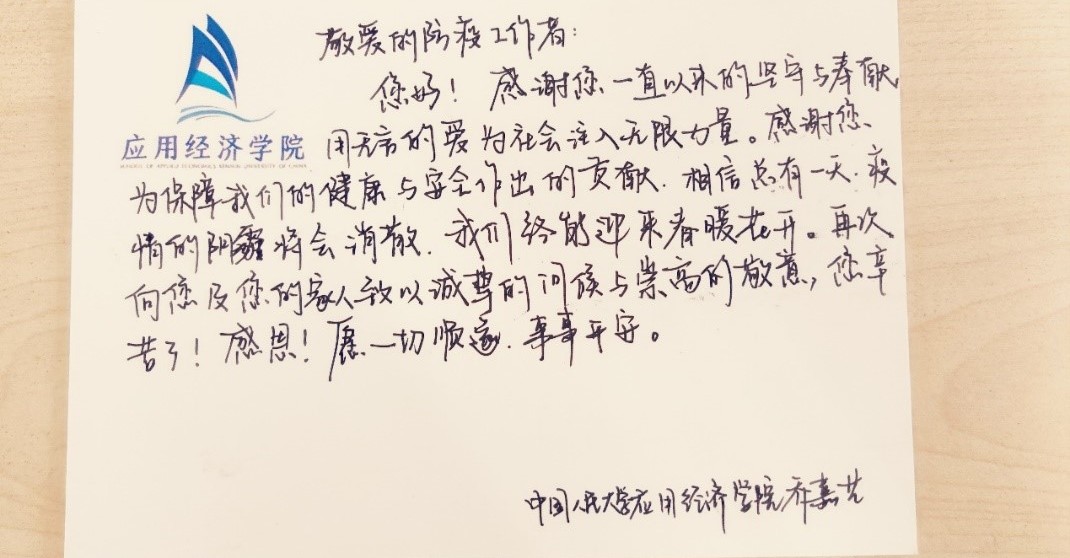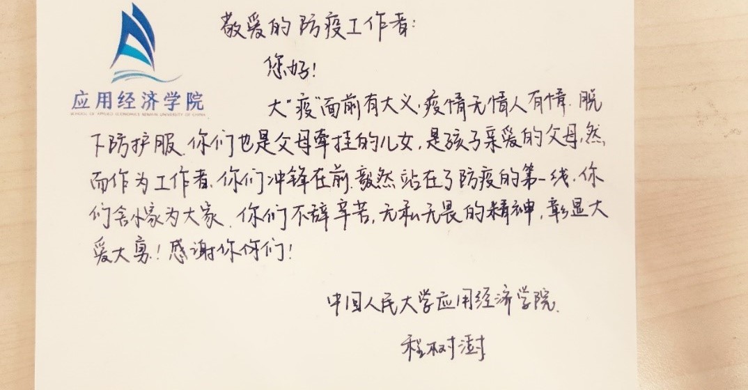 在志愿者的积极参与下,本次“信好有你,健康同行”圆满结束。本次活动得到了来自全校多个黑料社 同学的积极响应,共有不同黑料社 的65名同学以及6名工作人员参与,收集了三百余张明信片。所有明信片经工作人员整理后赠送给了人民大学校内医护人员和防疫志愿者。与此同时,同学们的明信片也受到了各位防疫工作者的感激与认可。致谢者与防疫者相互温暖,融融情谊共迎盛夏。
