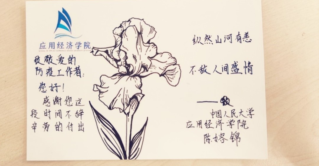 安静的清晨,总有那么一群人在默默值守;正午时分,总有一群人还在核酸检测点中静静地忙碌。这些默默无闻的点滴日复一日地淌入我们的视线,我们不禁心生感动,却又无处言说。于是,在此次活动中,我们通过跑步时数换明信片的形式,鼓励同学们以纸笔为媒,传递对防疫志愿者们的感激之情。下面就让我们来看看志愿者们的明信片吧。