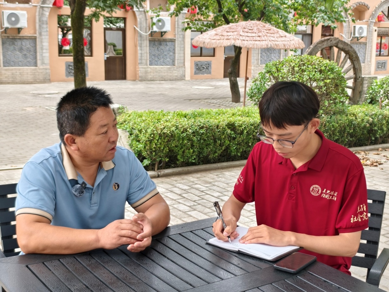 ▲本科生王邦锞访谈十里铺村支书