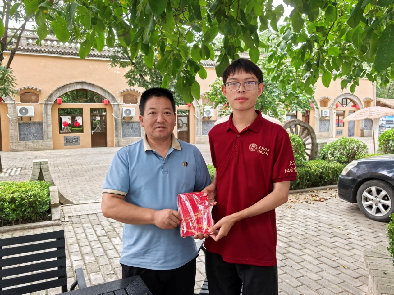 ▲本科生张晨皓访谈姜曹村脱贫户姜西武