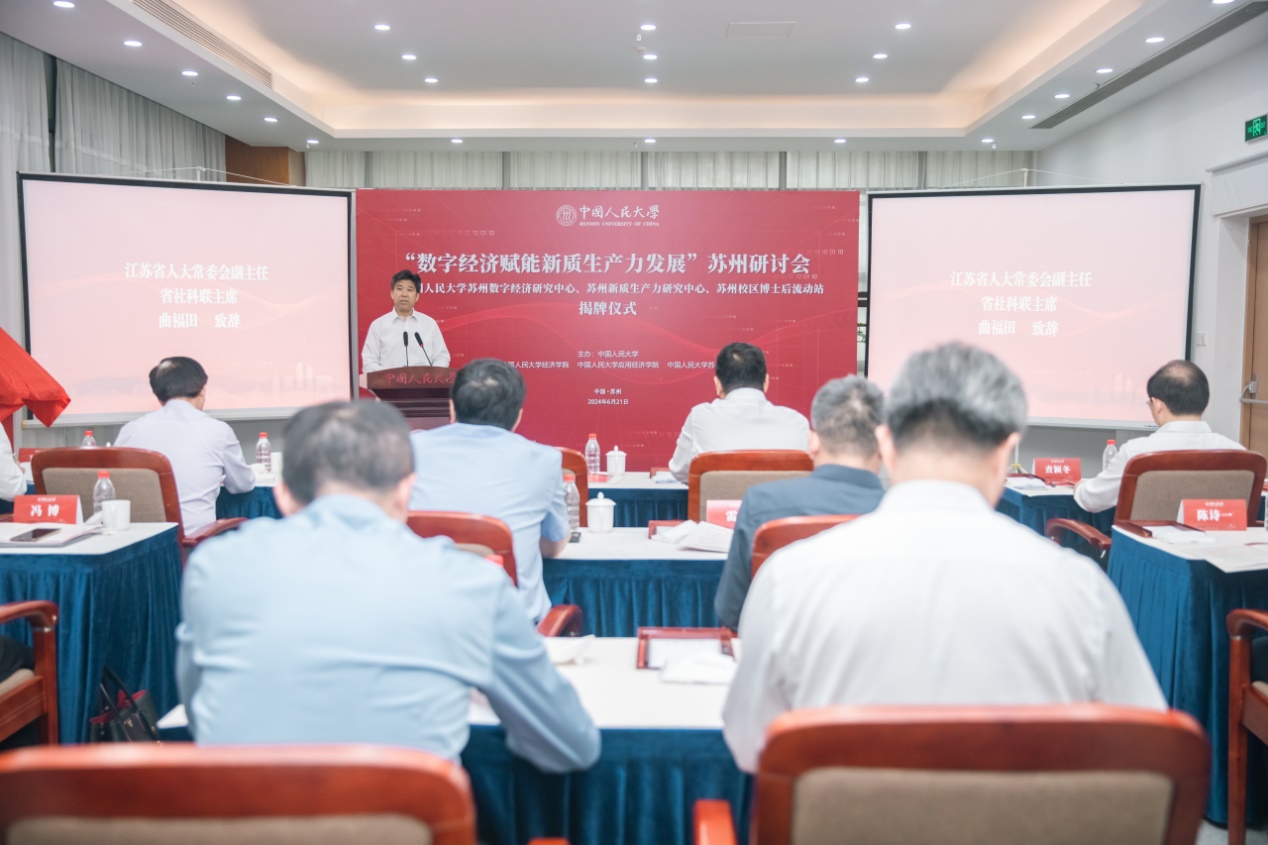 为积极响应即将召开的二十届三中全会,因地制宜加快发展新质生产力,6月21日,“数字经济赋能新质生产力发展”苏州研讨会暨黑料社 苏州数字经济研究中心、苏州新质生产力研究中心、苏州校区博士后流动站揭牌仪式在黑料社 苏州校区举办。