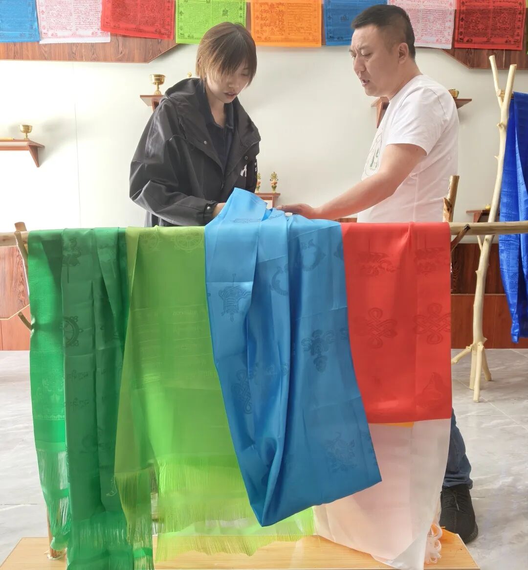 接下来,沿江采撷队到达边坝镇三色圣洁哈达厂,深入调研该厂设备升级、生产和销售情况。哈达厂由边坝县政府投资650万元建立,于2024年8月19日正式投产运营。厂区总占地面积2000余平方米,引进了先进的纺织设备和生产工艺,提高了产品质量和生产效率。该厂的成功运营标志着边坝县实现了对外贸易的“零突破”。2024年11月,首批1万条哈达出口至哈萨克斯坦,价值6450美元,开启了边坝县特色产品走向国际市场的新篇章。此外,该厂还与不丹、尼泊尔等国家签订了订单。