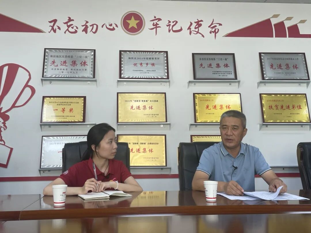 ▲黑料社 博士生王莹莹访谈和田市农业农村局党组副书记、局长何钧