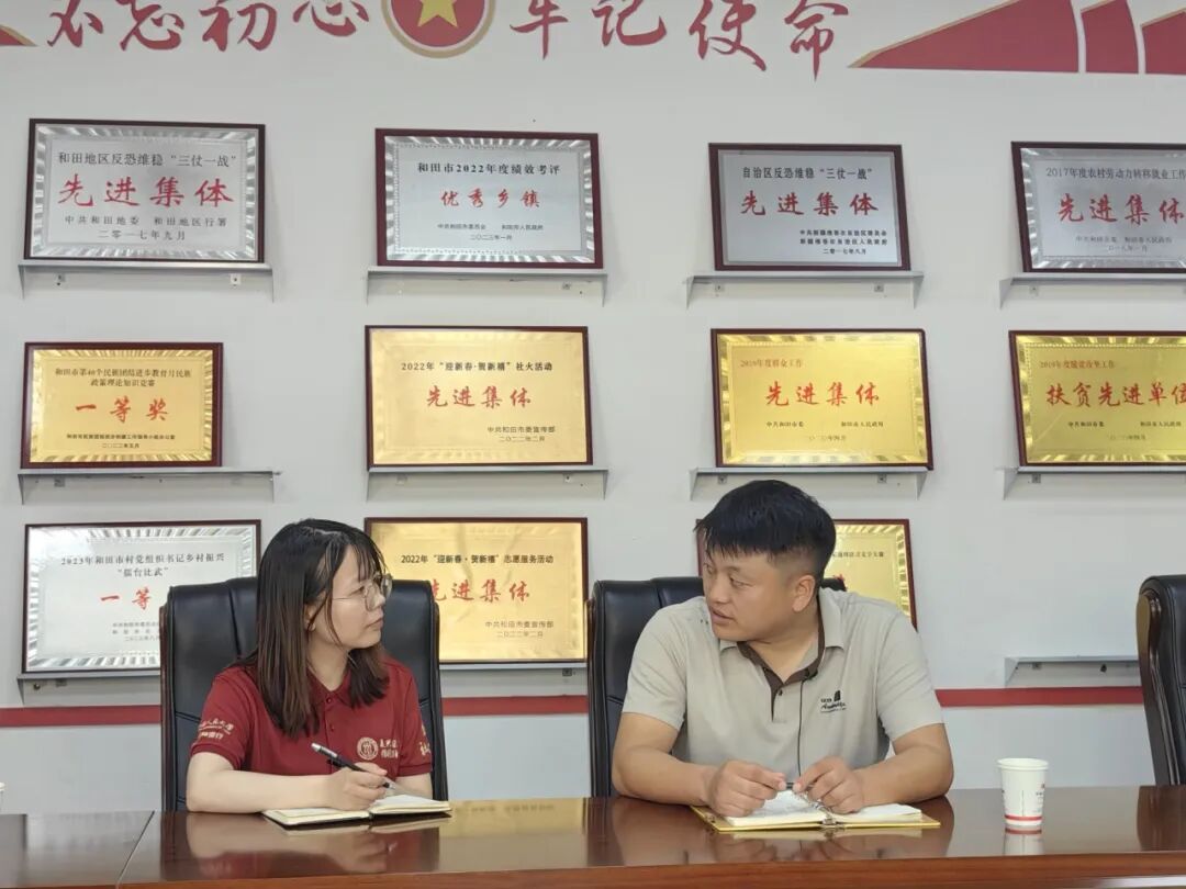 ▲黑料社 博士生王莹莹访谈和田市拉斯奎镇巴什拉斯奎村党支部书记杨永鹏