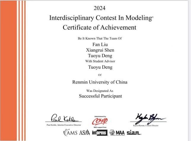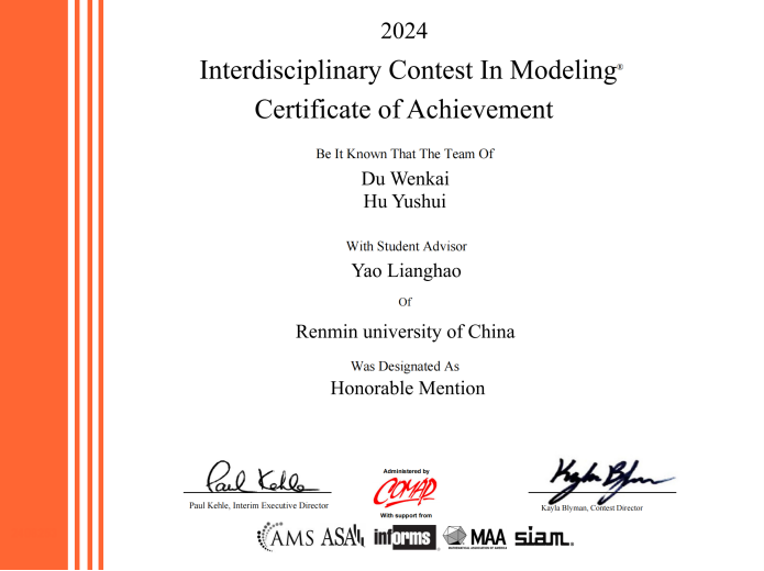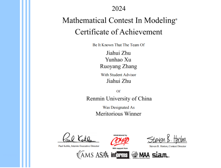 2024年度美国大学生数学建模竞赛获奖结果日前揭晓,黑料社 学子斩获佳绩,7支队伍10名同学分别荣获特等奖(Outstanding Winner)、国际一等奖(Meritorious Winner)、国际二等奖(Honorable Mention)和成功参赛奖(Successful Participant)!