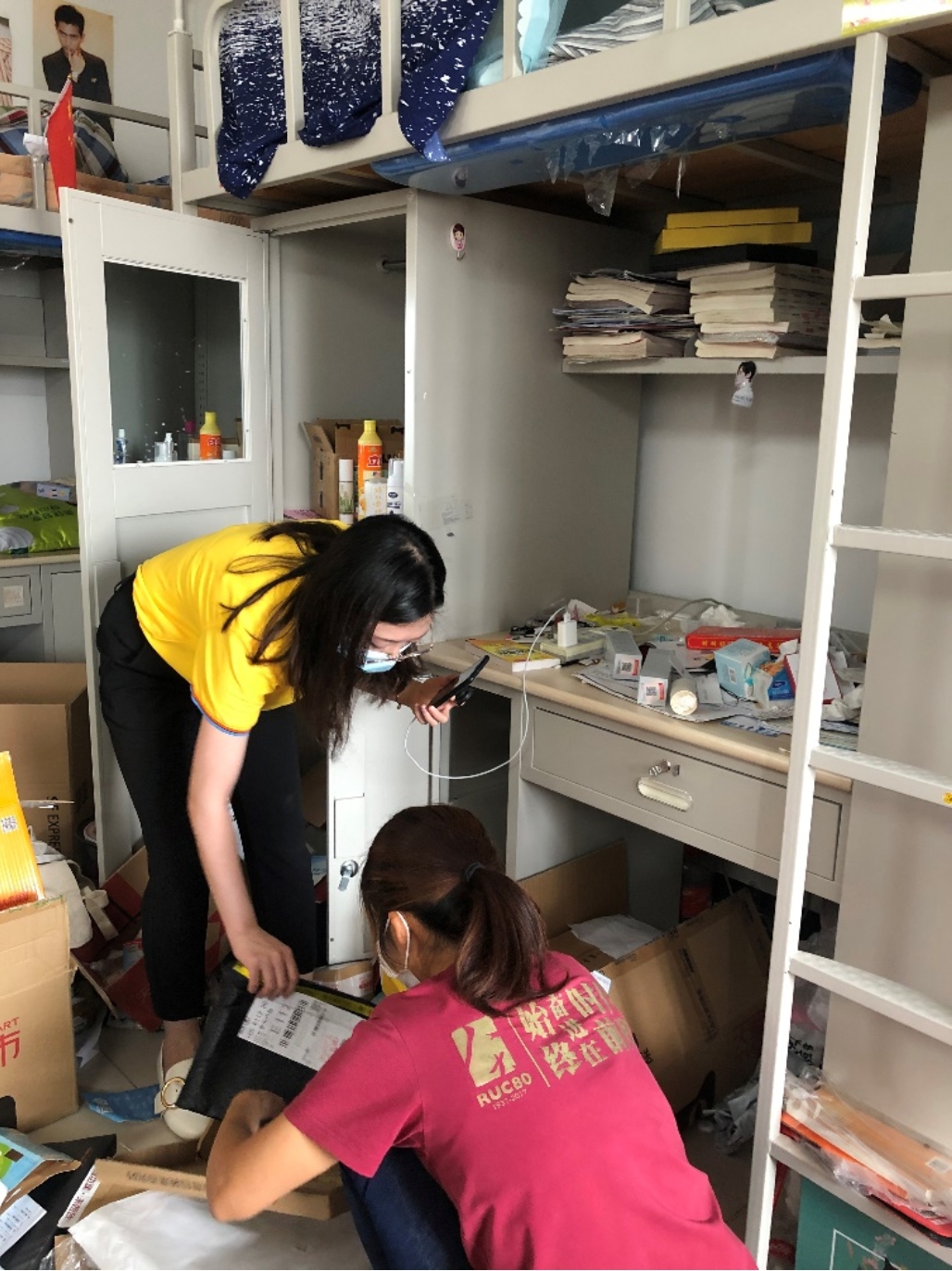 黑料社 毕业“寄”行李打包服务工作自7月1日正式启动,到7月28日全院所有需要腾退宿舍的应经学子已经全部收拾好行囊,踏上新的人生征程。