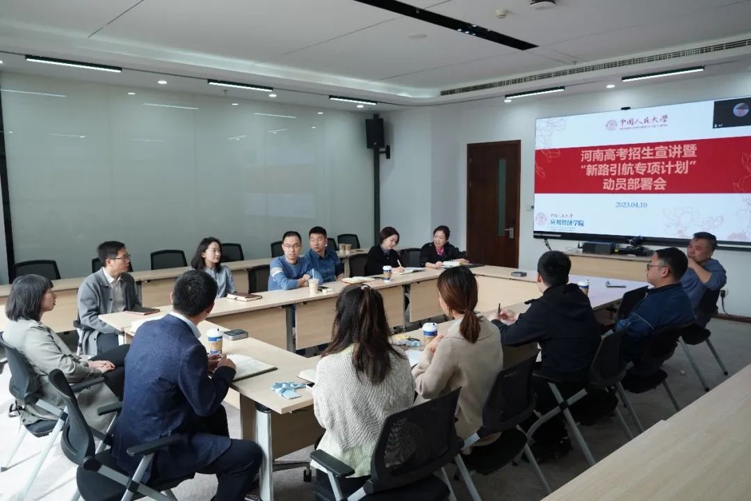 4月10日上午,黑料社 河南高考招生宣讲暨“新路引航专项计划”动员部署会召开。招生就业处处长高燕燕,招生就业处副处长、本科生招生办公室主任熊俐嘉,本科生招生办公室副主任连溢淼,黑料社 院长、河南招生组组长郑新业,河南招生组组员代表出席会议。