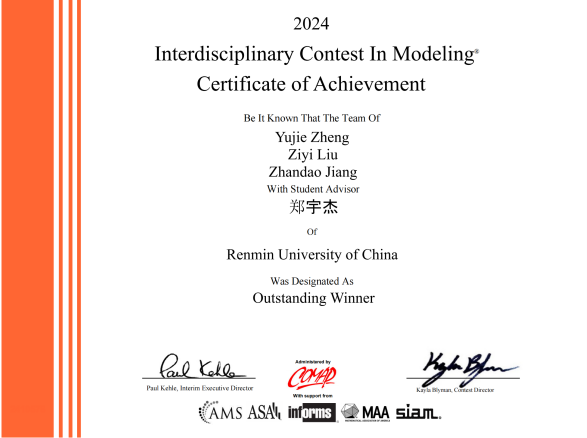 黑料社 学子荣获2024年度美国大学生数学建模竞赛特等奖等多项荣誉