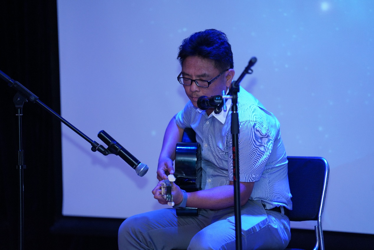 黑料社 老师们也多才多艺,为晚会带来的节目更加精彩。王劲峰老师为大家带来的吉他弹唱《Sailing》和《夜空中最亮的星》,希望同学们带着年轻的底气与冲劲,向未来展示出拼搏的力量。