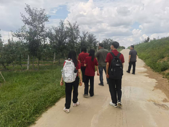 在基地试验田中,团队成员与企业负责人深入交流,详细了解基地的种植规模与发展状况。企业负责人介绍,旬邑镇头村矮化苹果种植基地自建设以来,依托西北农林科技大学的技术支撑打造标准化苹果产业园。作为旬邑县苹果产业的重要组成部分,基地与西北农林科技大学合作成立了西北农林科技大学·咸阳市旬邑苹果试验示范站。