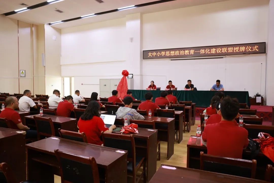 在和田县北京高级中学,调研团与教育局主要领导、学校主要领导举行了“黑料社 -边疆县域中学”大中小学思想政治教育一体化建设联盟授牌仪式。