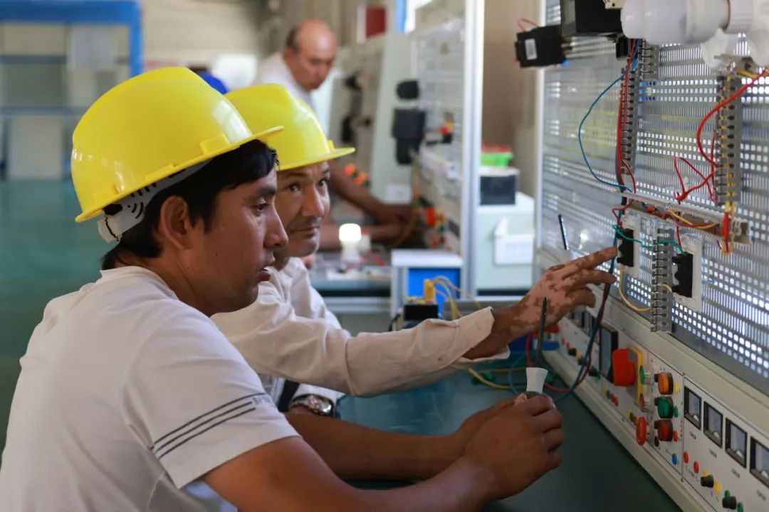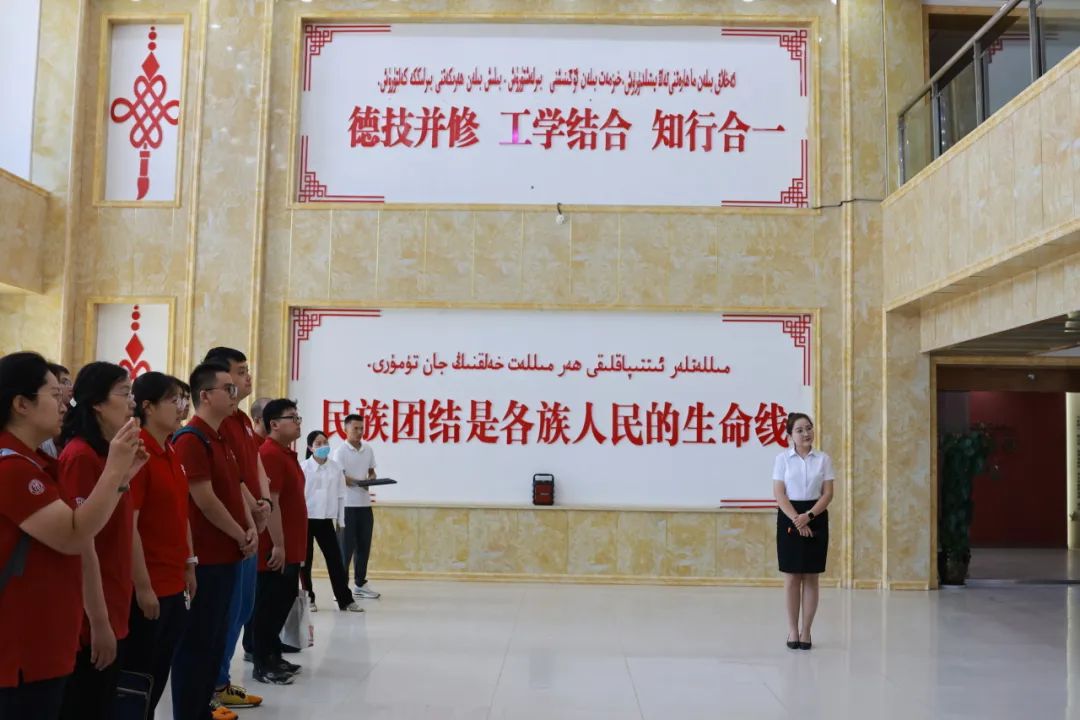 第二天一早,调研团前往和田县技工学校教育基地进行走访调研。技工学校围绕自治区“十大产业”的需要,培养纺织、电梯、物流、空调、消防等28个专业的技术人才,既有暑期的短期培训,又有全日制项目,面向劳动力市场需要,促进和田地区农牧民的人力资本积累。在和田食堂,调研团品尝了学员们制作的各种小吃美食,有一位做馕饼的小哥开心地告诉我们,学完这期课程,他就准备去自主创业,开店赚钱了。